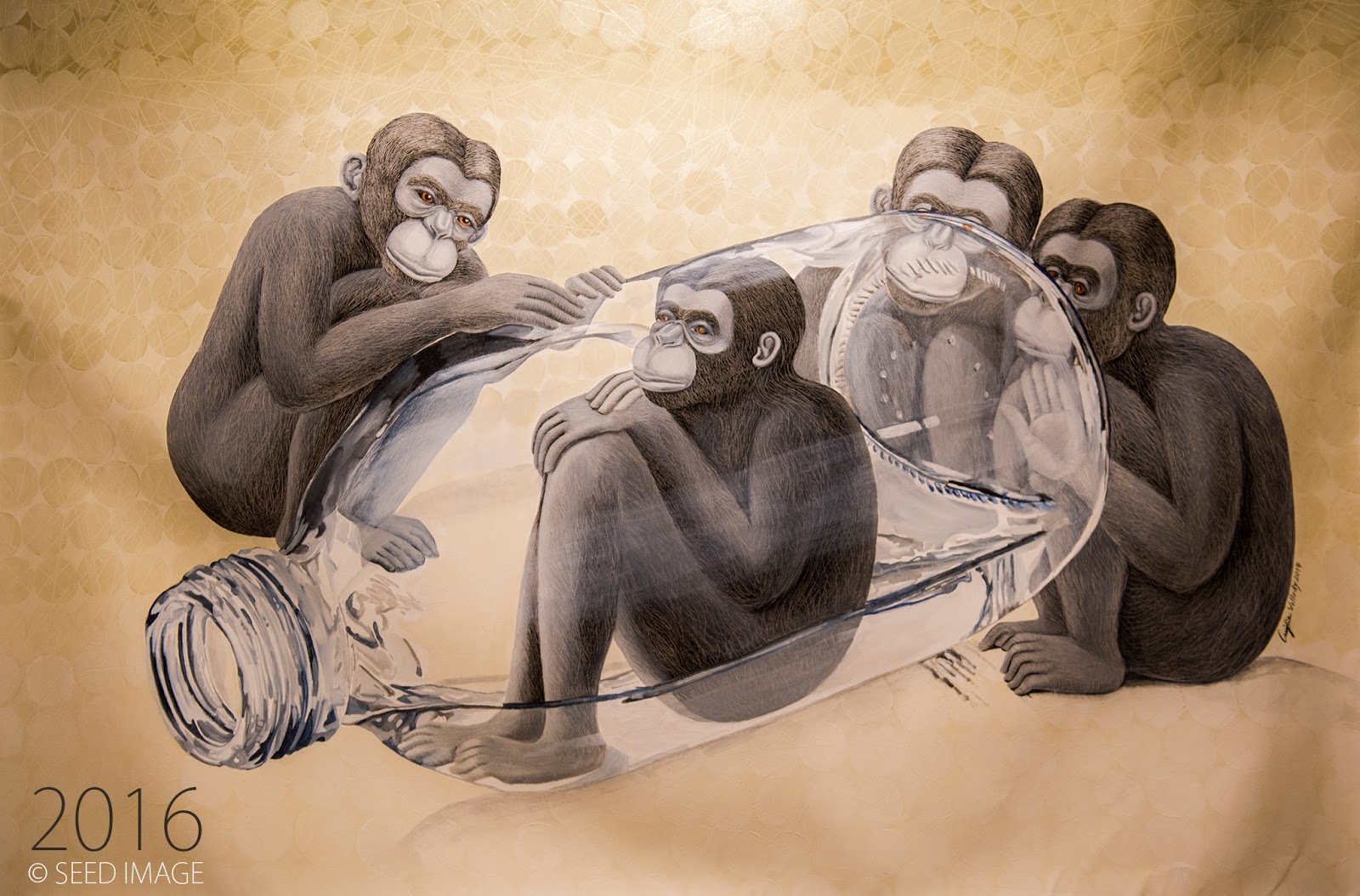 With these information, the artist created his painting beautifully. Therefore, his paintings are a result of his inspiration received from the Chin tribe. Incidentally, the word "Chin" is my home lady boss name. Hmmm....